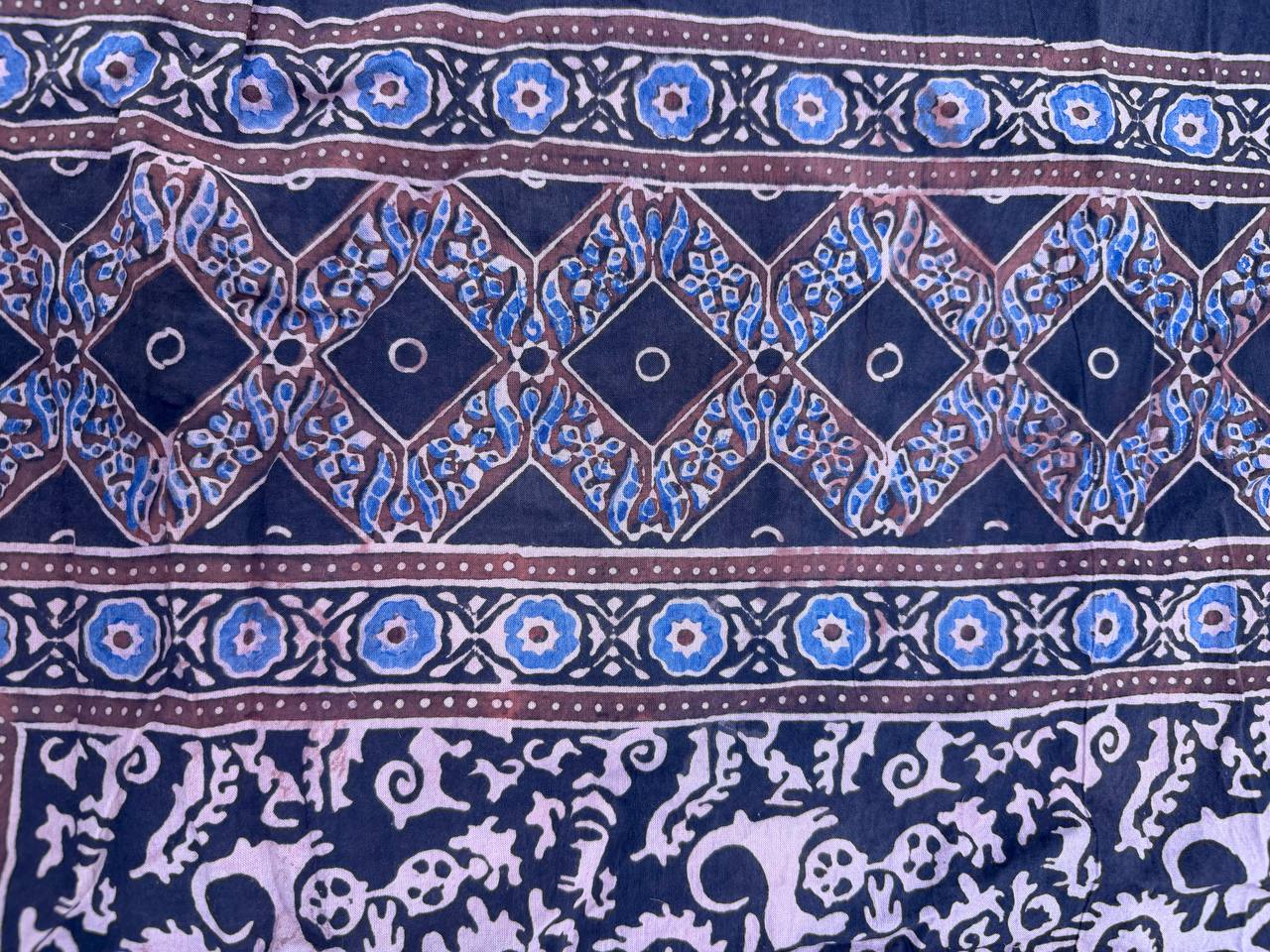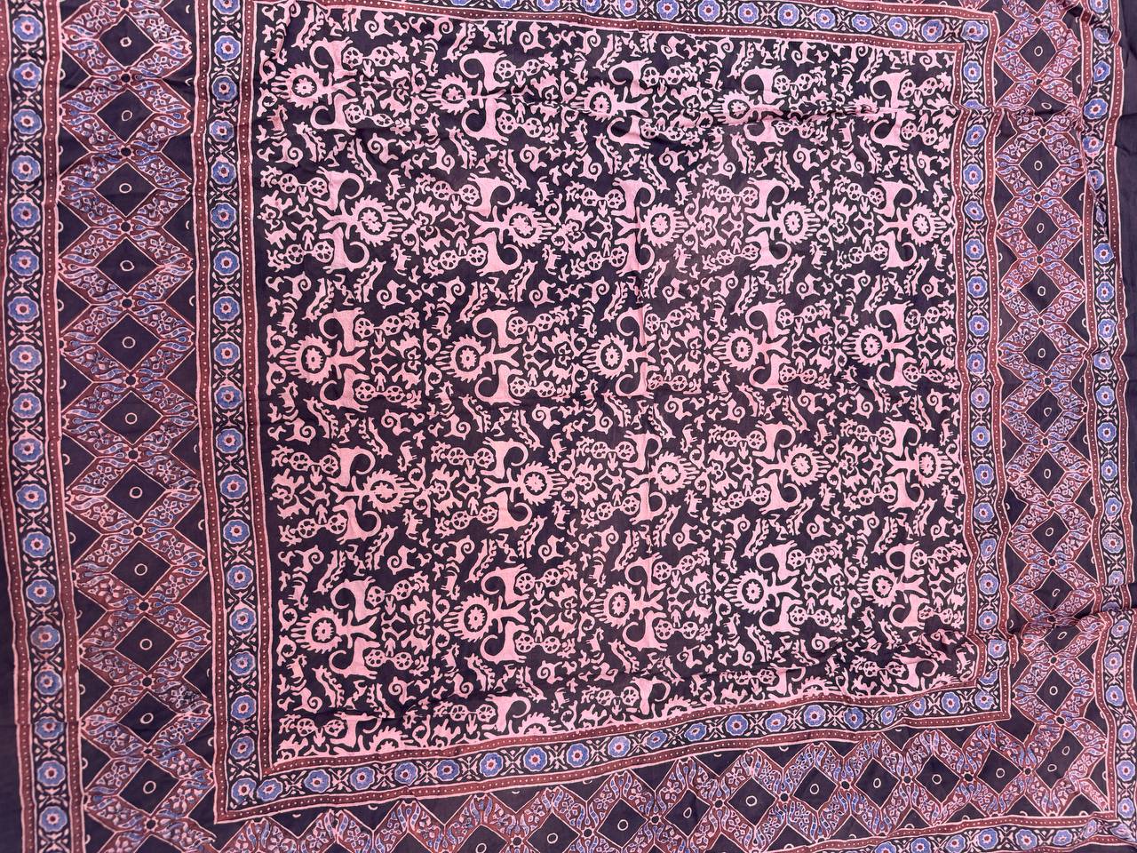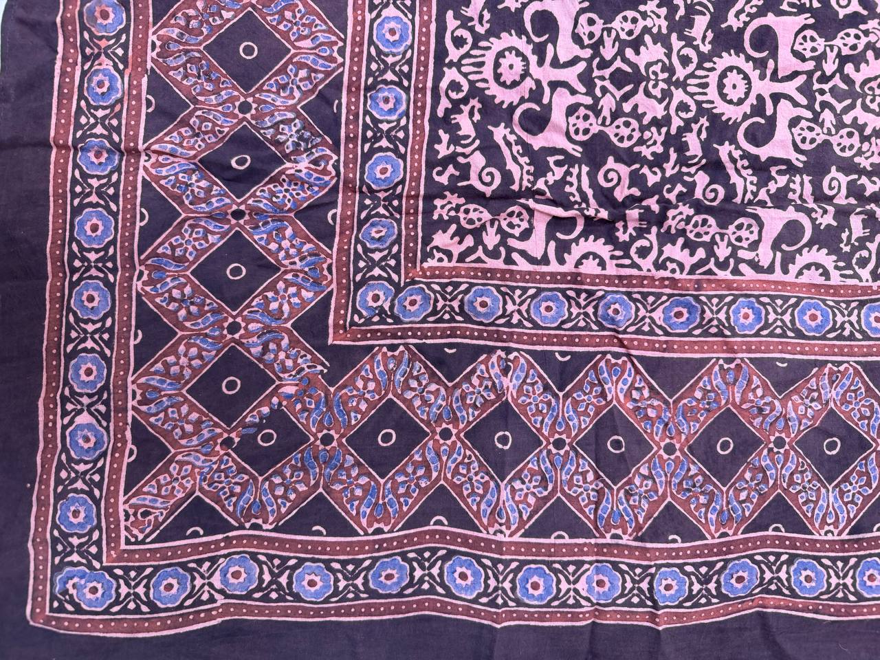 границы используют индийские орнаментальные системы, предоставляя ритм, модульность и пространственный порядок, характерный для текстиля Ajrakh.
